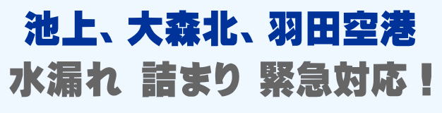 池上、大森北、羽田空港での水の困った即解決!急な水道トラブルに緊急でかけつけ訪問し、蛇口の水漏れ、トイレ詰まり、排水の溢れ、タンクの故障など修理いたします。